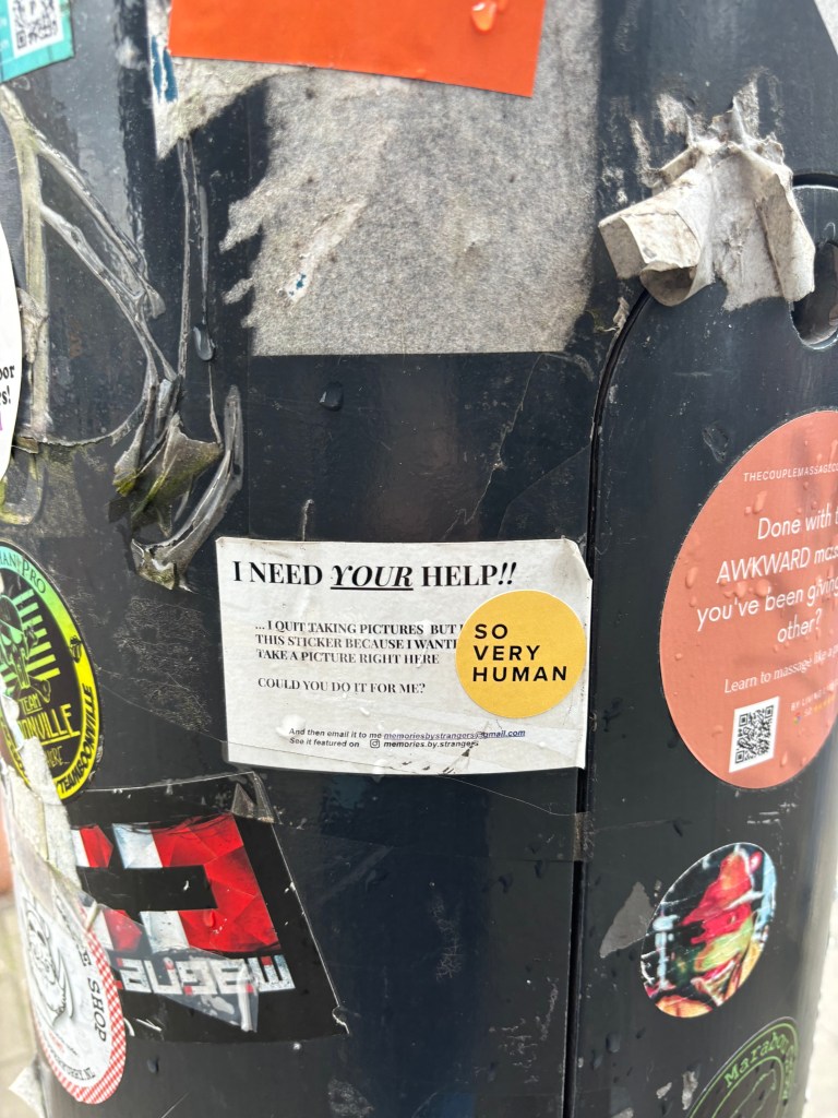 This is because the creative process here requires a kind of openness, attentiveness, and curiosity about my physical environment and its messages. Rather than just walking to a cafe or to my next appointment with my head down, blocking out my world, and hastily fixated on the point of “arrival” – this project necessitates a mindful slowing down, a more careful observation of the world already always transpiring around me, and an openness to the humanity that is being reflected to me even in the most unsuspecting or surprising places.